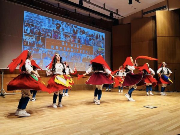 Ακολούθησε εορταστικό πρόγραμμα στην αίθουσα τελετών του Καθεδρικού Ναού, με τραγούδια και χορούς που παρουσίασαν νέοι και νέες από τη Νεολαία της Αρχιεπισκοπής Τιράνων.