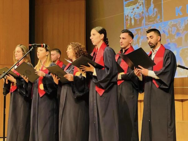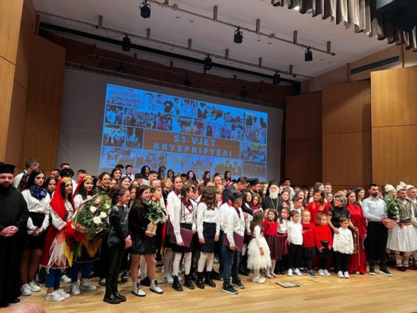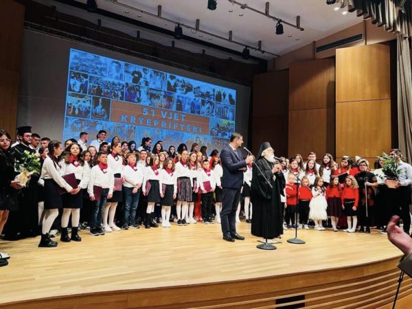 Ακολούθησε εορταστικό πρόγραμμα στην αίθουσα τελετών του Καθεδρικού Ναού, με τραγούδια και χορούς που παρουσίασαν νέοι και νέες από τη Νεολαία της Αρχιεπισκοπής Τιράνων.