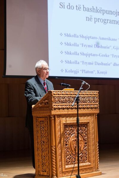 Ο Μακαριώτατος Αρχιεπίσκοπος Τιράνων, Δυρραχίου και πάσης Αλβανίας, που είναι και Πρόεδρος του Ιδρύματος, του οποίου είχε την πρωτοβουλία ίδρυσης προκειμένου υλοποιήσει το όραμα του για την παρουσία της Ορθοδόξου Εκκλησίας στον τομέα της παιδείας, χαιρέτησε την Ημερίδα ενώ παρακολούθησε μαζί με όλους τους συμμετέχοντες όλες τις σχετικές διαλέξεις και παρουσιάσεις. Παρότρυνε τους εκπαιδευτικούς – συνεργάτες όπως τους αποκάλεσε στο θεάρεστο αυτό έργο της Εκκλησίας – για συνεχή ευχαριστία στο Θεό, καθώς έχει πλούσια ευλογήσει την κοινότητα των Ορθοδόξων σ’ αυτή την προσπάθεια. Όταν ξεκινούσε η ιεραποστολική δράση και η προσπάθεια της ανασύστασης της Ορθοδόξου Εκκλησίας της Αλβανίας, το 1991, τότε που οι Θεία Λειτουργία τελούνταν απ’ τον Αρχιεπίσκοπο Αναστάσιο σε ερειπωμένους ναούς και κάτω απ’ τα δέντρα, εκεί που κάποτε βρίσκονταν  ναός, παρά τη θέληση ώστε η Εκκλησία να είναι παρούσα και στο πεδίο της εκπαίδευσης, ούτε η πιο τολμηρή φαντασία δεν θα μπορούσε να συλλάβει αυτό που σήμερα βιώνουμε και μαρτυρούμε.