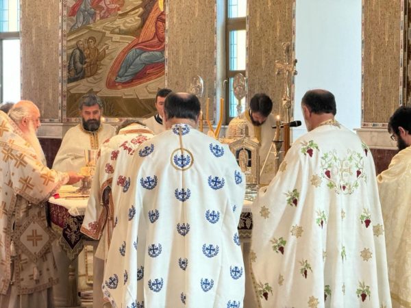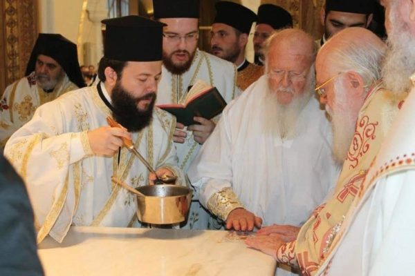 Μετά την τοποθέτηση των ιερών λειψάνων στην Αγία Τράπεζα, άρχισε το Συλλείτουργο των Προκαθημένων Ορθοδόξων Εκκλησιών, προεξάρχοντος του Παναγιωτάτου Οικουμενικού Πατριάρχου κ.κ. Βαρθολομαίου και των συλλειτουργούντων Πατριαρχών Ιεροσολύμων Θεοφίλου, Σερβίας Ειρηναίου (μακαριστός πλέον), Ρουμανίας Δανιήλ και των Αρχιεπισκόπων Κύπρου Χρυσοστόμου (μακαριστός πλέον), Αθηνών Ιερωνύμου, Βαρσοβίας Σάββα και Τιράνων Αναστασίου. Συλλειτούργησαν επίσης και Σεβασμιώτατοι Μητροπολίτες, εκπρόσωποι των Πατριαρχών Αλεξανδρείας, Αντιοχείας, Μόσχας, Βουλγαρίας, και Γεωργίας.