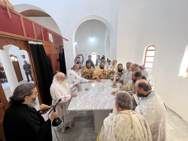 Ο Σεβασμιώτατος  κ. Δημήτριος σε σύντομο χαιρετισμό του μετά τη Θεία Λειτουργεία παρότρυνε για περισσότερη ευχαριστία προς τον Ζωοδότη Θεό που αναζωογονεί την ελπίδα και σε μέρη τέτοια δύσκολα και ενορίες ακριτικές και ολιγάριθμες.