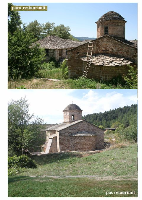 Έτσι αποκαταστάθηκαν ιστορικά μοναστήρια και παλαιές εκκλησίες, όπως η Μονή της Αδρενίτσας, η Μονή Αγίου Κοσμά στο Κολικόντασι, η Μονή Κοίμησης της Θεοτόκου στο Ζβερνέτσι της Αυλώνας, η Μονή του Αγίου Δημητρίου στο Κηπαρό, η Μονή του Αγίου Νικολάου στη Νίβα Αργυροκάστρου, η εκκλησία των Αγίων Πάντων στη Χειμμάρα, η εκκλησία της Αγίας Παρασκευής στην Καβάγια, η εκκλησία της Παναγίας στο Βραχο-Γκοραντζί Αργυροκάστρου, η εκκλησία του Αγίου Γεωργίου στην Τσούκα των Αγίων Σαράντα, η εκκλησία της Παναγίας στους Ζερβάτες Αργυροκάστρου, η εκκλησία της Μονής του Αγίου Ιωάννου του Βλαδίμηρου στο Ελμπασάν, κ.λπ.