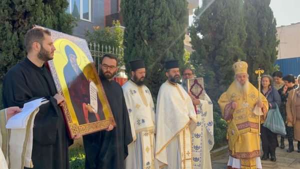 Μετά το πέρας της Θείας Λειτουργίας ακολούθησε η λιτάνευση της Ιεράς Εικόνας του Αγίου στον περιβάλλοντα χώρο του ναού.