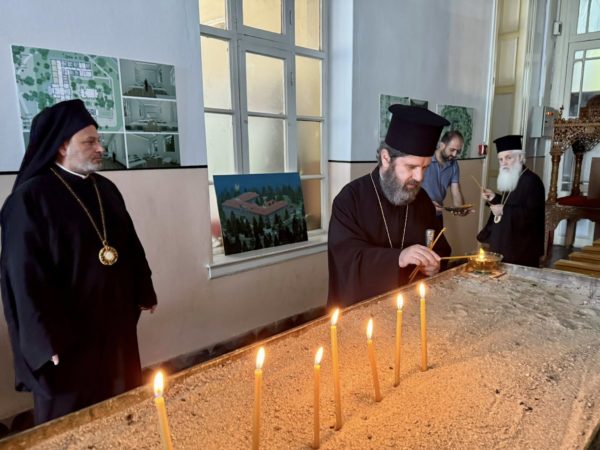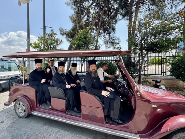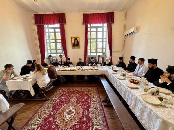 Μετά την ανταλλαγή αναμνηστικών δώρων, ο Μακαριώτατος και η συνοδεία του ξεναγήθηκαν στις παλαιές αίθουσες διδασκαλίας, την ιστορική Βιβλιοθήκη και τους λοιπούς χώρους της Σχολής, παρακάθησαν στην προς τιμή του Μακαριωτάτου παρατεθείσα τράπεζα και προεπέμφθησαν από τον Καθηγούμενο.