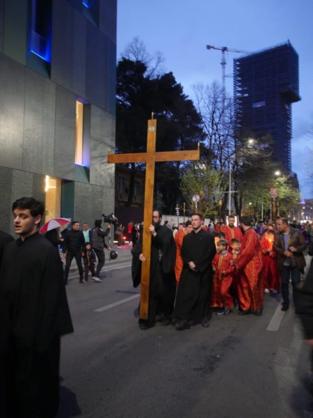 Ακολούθησε η περιφορά του Επιταφίου σε κεντρικούς δρόμους των Τιράνων. Της λιτανευτικής πομπής προεξήρχε ο Μητροπολίτης Αμαντίας κ. Ναθαναήλ.