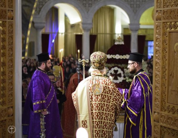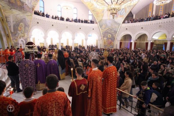 Ο ναός ήταν κατάμεστος από πιστούς κάθε ηλικίας οι οποίοι μαζί με τους χορούς του Καθεδρικού Ναού έψαλλαν τα Εγκώμια.