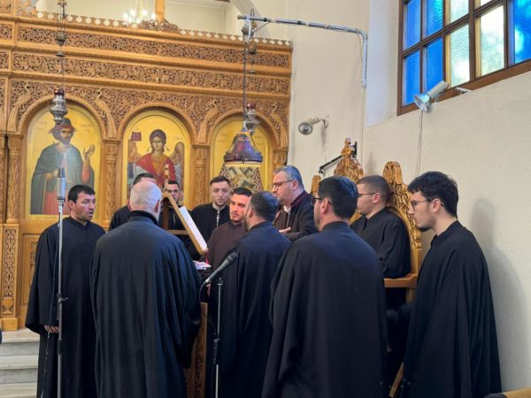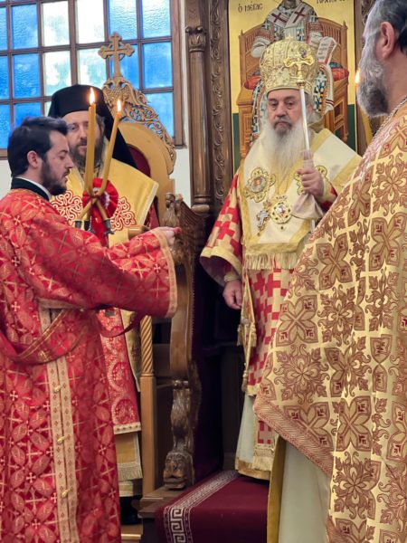 Το πρωί της Δευτέρας, 22 Ιανουαρίου, στον Ιερό Ναό Ευαγγελισμού της Θεοτόκου, τελέστηκε με αφορμή την εορτή Θεία Λειτουργία, προεξάρχοντος του Μητροπολίτη Αμαντίας κ. Ναθαναήλ. Συλλειτούργησαν ο Επίσκοπος Βύλλιδος κ. Άστιος, κληρικοί και διάκονοι της Αρχιεπισκοπής Τιράνων.