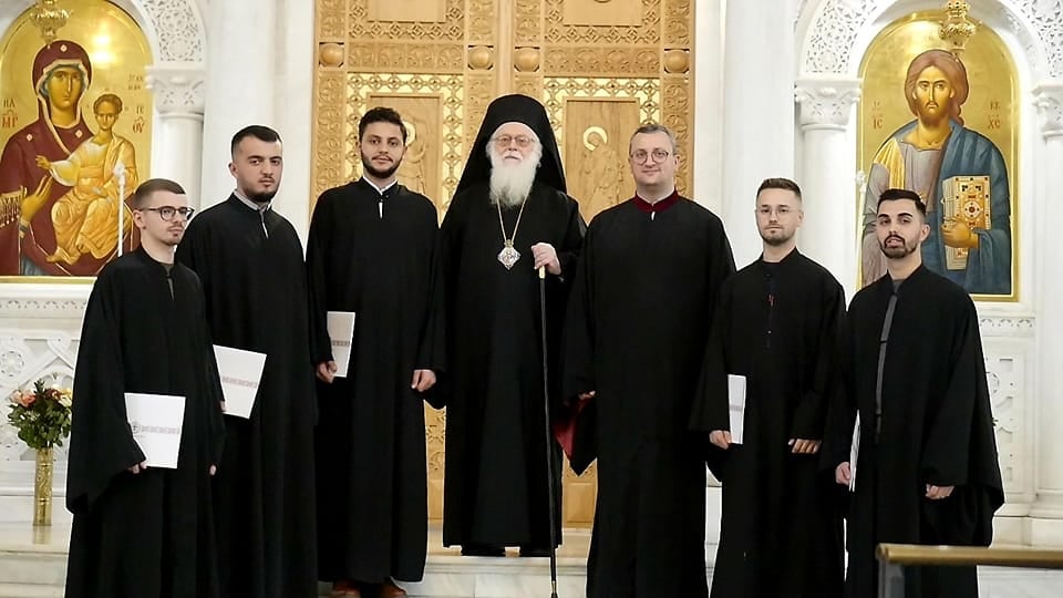 Τα διπλώματα σε 5 νέους που αποφοίτησαν από τη Σχολή Βυζαντινής Μουσικής της Εκκλησίας της Αλβανίας, στην οποία οι σπουδαστές έχουν τη δυνατότητα να εκμάθουν την ψαλτική τέχνη, παρέδωσε σε ειδική εκδήλωση στον Καθεδρικό Ναό της Αναστάσεως του Κυρίου στα Τίρανα ο Αρχιεπίσκοπος κ.κ. Αναστάσιος.