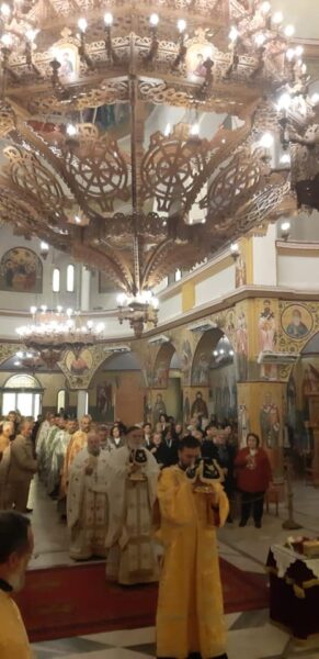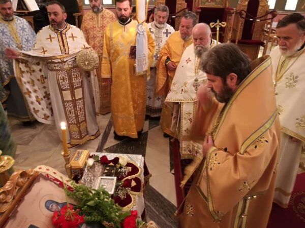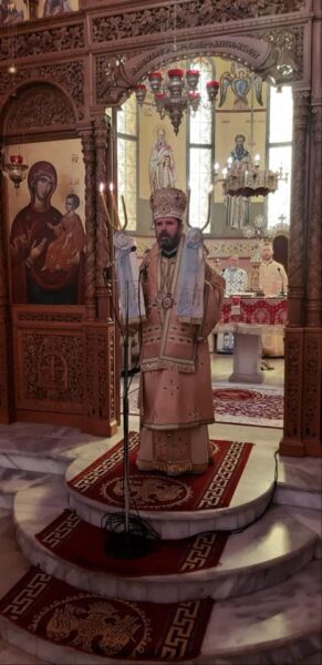 Στο τέλος της Θείας Λειτουργίας ο Σεβασμιώτατος ευχαρίστησε το πολυπληθές εκκλησίασμα για τη συμμετοχή στη πανηγυρική Θεία Λειτουργία και αναφέρθηκε στην μεγάλη ευλογία της Μητρόπολης να έχει απότμημα του ιερού λειψάνου του Αγίου.