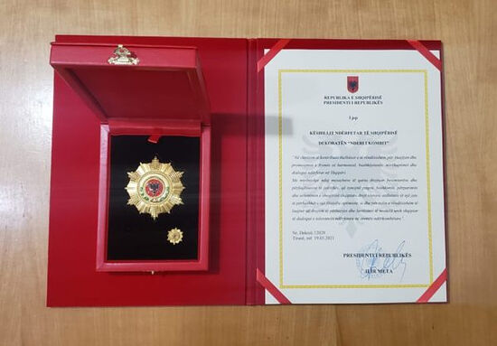 Τη Δευτέρα 22 Μαρτίου ο Πρόεδρος της Αλβανίας κ. Ιλίρ Μέτα παρασημοφόρησε με το μετάλλιο “Τιμή του Έθνους” το Διαθρησκειακό Συμβούλιο της Αλβανίας για το έργο που επιτελεί για να διατηρηθεί η αρμονία στην Αλβανία. Το βραβείο απονεμήθηκε στον Μακαριώτατο Αρχιεπίσκοπο Αλβανίας κ.κ. Αναστάσιο, ο οποίος το παρέλαβε για λογαριασμό του Συμβουλίου.