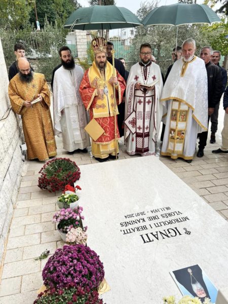Μετά το πέρας της Θείας Λειτουργίας, ο νέος Μητροπολίτης κ. Άστιος μετέβη στον αύλειο χώρο του Ναού και τέλεσε τρισάγιο στον τάφο του προκατόχου του, μακαριστού Μητροπολίτη κυρού Ιγνατίου.