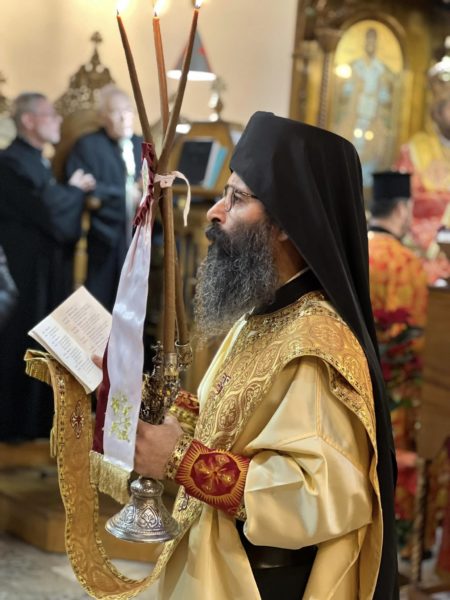 Ο Σεβασμιώτατος ιερούργησε την Πέμπτη, 12 Δεκεμβρίου 2024, στον πανηγυρίζοντα Ιερό Ναό του Αγίου Σπυρίδωνα. Κατά τη διάρκεια της Θείας Λειτουργίας τέλεσε την εις Πρεσβύτερον χειροτονία του ιεροδιακόνου π. Ιγνατίου Τόντρι.