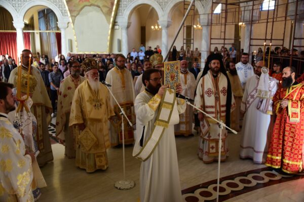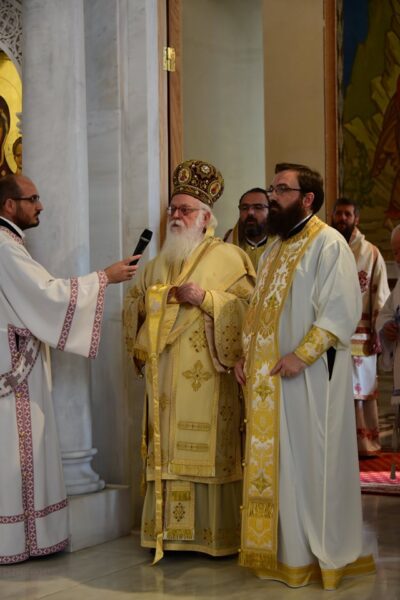 Στη Θεία Λειτουργία που τελέστηκε συλλειτούργησαν οι Σεβασμιώτατοι Μητροπολίτες Βερατίου κ. Ιγνάτιος, Ελμπασάν κ. Αντώνιος και Αμαντίας κ. Ναθαναήλ και ο Θεοφιλέστατος Επίσκοπος Βύλιδος κ. Άστιος.