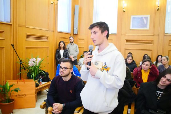 Στη συνέχεια ο Προκαθήμενος της Ορθοδόξου Αυτοκεφάλου Εκκλησίας της Αλβανίας, υποδέχθηκε στο Συνοδικό Μέγαρο περίπου 100 νέους και νέες από την Αρχιεπισκοπή Τιράνων, τις Ιερές Μητροπόλεις Κορυτσάς και Ελμπασάν, καθώς και το Γυμνάσιο “Πρωταγωνιστές”.