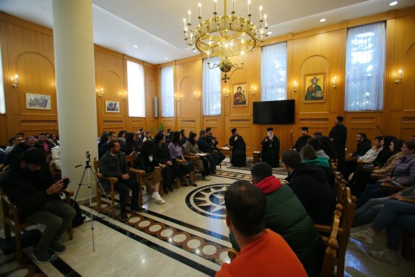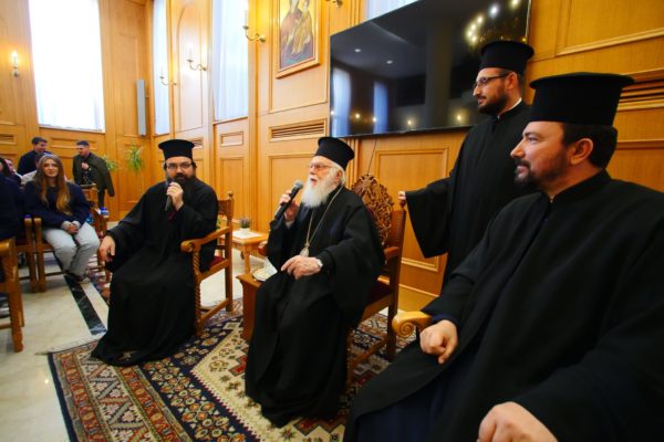 Στη συνέχεια ο Προκαθήμενος της Ορθοδόξου Αυτοκεφάλου Εκκλησίας της Αλβανίας, υποδέχθηκε στο Συνοδικό Μέγαρο περίπου 100 νέους και νέες από την Αρχιεπισκοπή Τιράνων, τις Ιερές Μητροπόλεις Κορυτσάς και Ελμπασάν, καθώς και το Γυμνάσιο “Πρωταγωνιστές”.