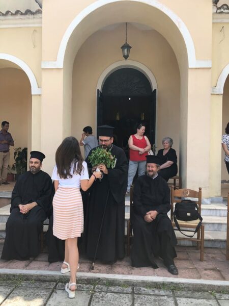 Τη Κυριακή των Αγίων Πατέρων της Δ’ Οικουμενικής Συνόδου, ο Σεβασμιώτατος τέλεσε τη Θεία Λειτουργία στην οποία συμμετείχαν και κοινώνησαν οι μικροί κατασκηνωτές.