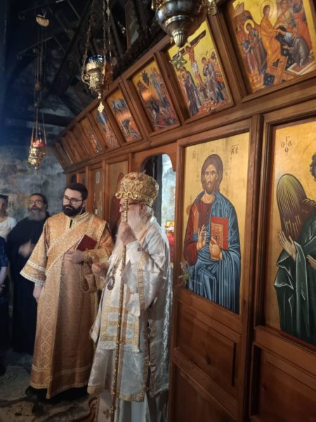 Με το πέρας της Θείας Λειτουργίας κατά το σύνηθες ο Μητροπολίτης τέλεσε Τρισάγιο για τους ηγουμένους και πατέρες που εγκαταβίωσαν στον Μοναστήρι και τάφοι των οποίων σώζωνται ακόμη.