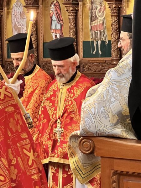 Κατά την Θεία Λειτουργία ο Σεβασμιώτατος προχείρησε σε Σταυροφόρους-Οικονόμους δύο κληρικούς της Μητρόπολης Βερατίου για την προσφορά τους στην τοπική Εκκλησία.