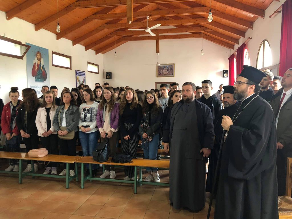 Ομάδα νέων και φοιτητών του Πανεπιστημίου “ΛΟΓΟΣ” επισκέφθηκε την Ιερά Μονή του Αγίου Ιωάννου Βλαντιμίρ όπου και συμμετείχε στην ακολουθία της Δ’ Στάσης των Χαιρετισμών, την οποία τέλεσε ο Σεβ. Μητροπολίτης Ελμπασάν κ. Αντώνιος. “Ήμασταν ευτυχείς που μεταξύ των πιστών από το Ελπμασάν υπήρχαν νέοι και πιστοί από τα Τίρανα. Δοξάστε τον Θεό για όλες τις ευκαιρίες που μας δίνει” ανέφερε μεταξύ άλλων στο κήρυγμά του ο Σεβασμιώτατος.