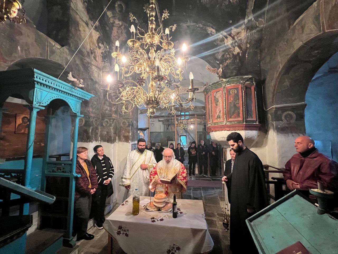 Μετά το πέρας της Θείας Λειτουργίας ο Μητροπολίτης Αργυροκάστρου κ. Ναθαναήλ μετέβη στον Ιερό Ναό της Αγίας Παρασκευής στους Τεριαχάτες της Δρόπολης, όπου τέλεσε τρισάγιο υπέρ αναπαύσεως της ψυχής του μακαριστού προκατόχου του κυρού Δημητρίου.