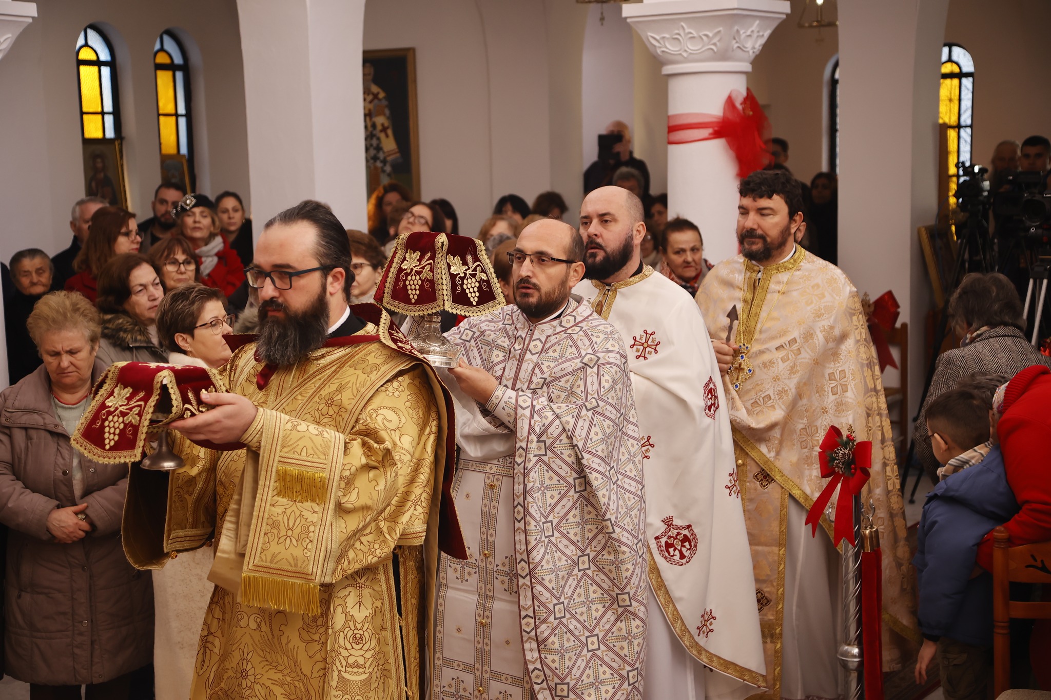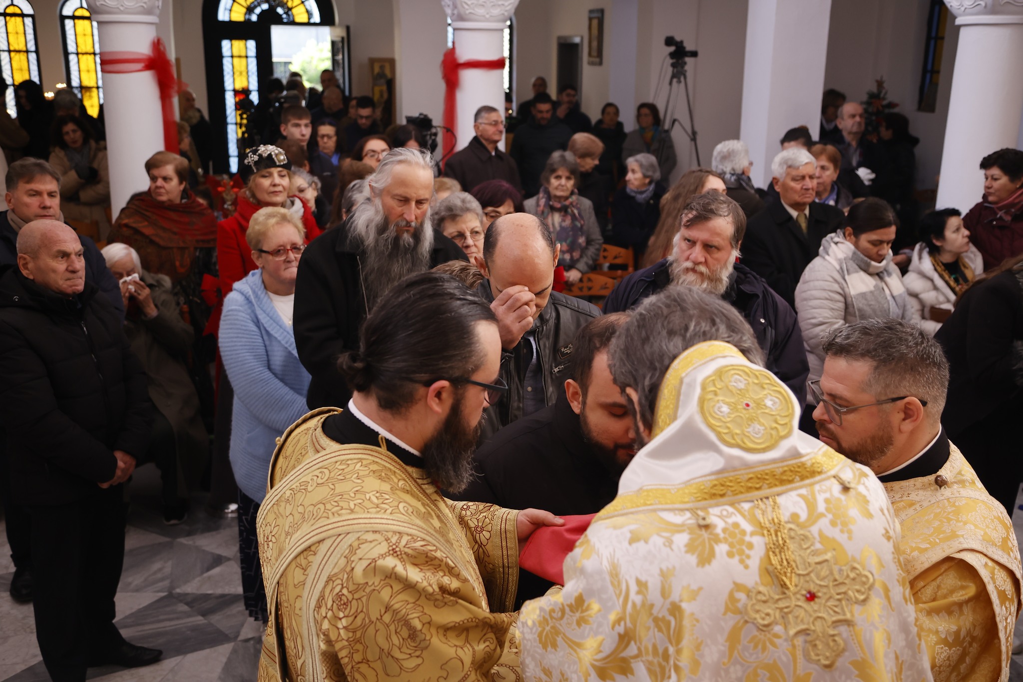 Τον Προκαθήμενο της εν Αλβανία Αυτοκεφάλου Ορθοδόξου Εκκλησίας προσφώνησε πριν το τέλος της Θείας Λειτουργίας ο ιερέας της ενορίας π. Αλέξανδρος ο οποίος με συγκίνηση μίλησε για το πώς δημιουργήθηκε αυτή η ενορίας μνημονεύοντας τον μακαριστό Αρχιεπίσκοπο κυρό Αναστάσιο και καλωσορίζοντας τον διάδοχό του κ.κ. Ιωάννη σε αυτή την ιστορική ημέρα για την ενορία.