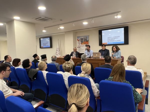 Η διάλεξη πραγματοποιήθηκε στο πλαίσια της Ελληνικής Πολιτιστικής Εβδομάδας στην Αλβανία.