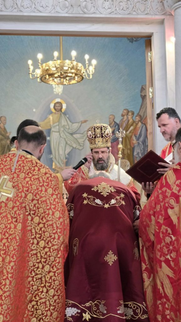 Πριν την απόλυση της Θείας Λειτουργίας ο Αρχιεπίσκοπος κ.κ. Ιωάννης απένειμε το οφφίκιο του Σακελλάριου – Σταυροφόρου στον π. Ηλία Μαζνίκ.