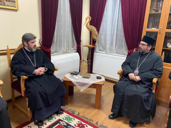 Πρώτος σταθμός ήταν η έδρα της Μητροπόλεως όπου ο Μητροπολίτης κ. Αντώνιος είχε συνάντηση με τον οικείο Ποιμεάρχη κ. Ιωάννη. Οι δυο Επίσκοποι συζήτησαν για ποιμαντικά ζητήματα που απασχολούν την Εκκλησία της Αλβανίας.