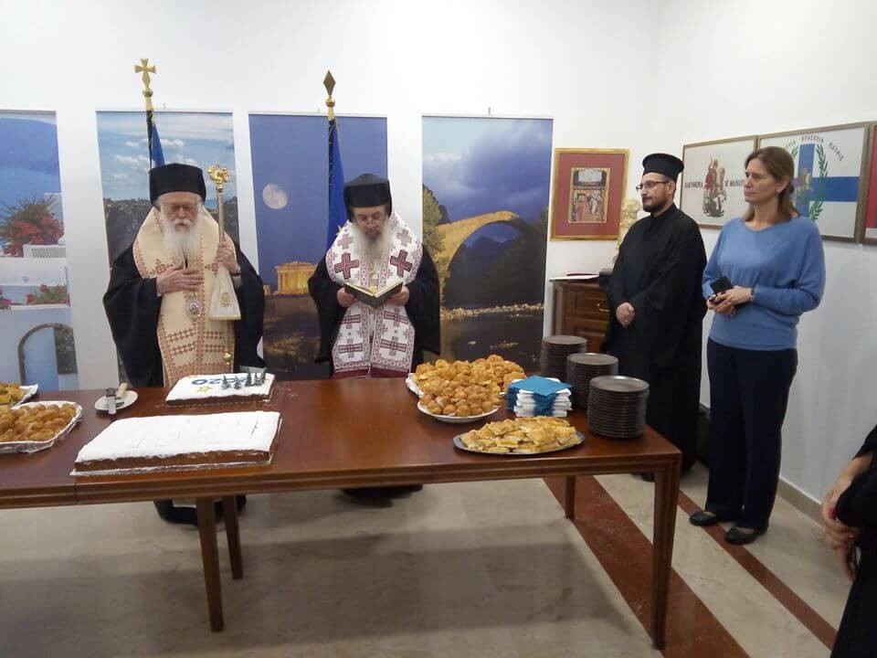 Παρουσία του Μακαριωτάτου Αρχιεπισκόπου Τιράνων, Δυρραχίου και πάσης Αλβανίας κ.κ. Αναστασίου, πραγματοποιήθηκε η καθιερωμένη κοπή της Αγιοβασιλόπιτας στην Ελληνική Πρεσβεία στα Τίρανα. Τον Μακαριώτατο συνόδευε ο Μητροπολίτης Αμαντίας κ. Ναθαναήλ.