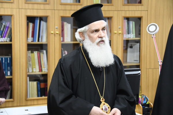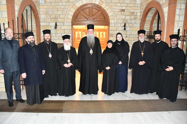 Τον Ιεράρχη της εν Σερβία Ορθοδόξου Εκκλησίας υποδέχθηκαν ο Μητροπολίτης Απολλωνίας και Φίερ κ. Νικόλαος, Διευθυντής της Θεολογικής Ακαδημίας εδρεύει στη Μονή, και ο Επίσκοπος Βύλιδος κ. Άστιος.