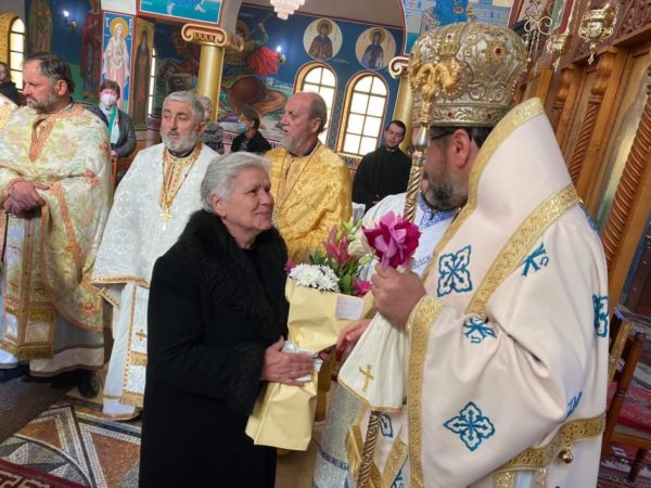 Επίσης, πλήθος πιστών έσπευσε να ευχηθεί στον ποιμένα του, προσφέροντάς του άνθη.