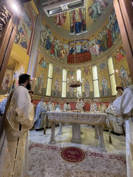 Η Θεία Λειτουργία τελέστηκε στον Καθεδρικό Ναό της Αναστάσεως του Κυρίου και έλαβαν μέρος ιερείς και διάκοι της Τοπικής Εκκλησίας οι οποίοι ευχήθηκαν στον Ποιμενάρχη τους να έχει υγεία και καλλίκαρπη διακονία.