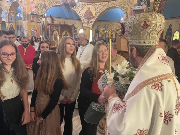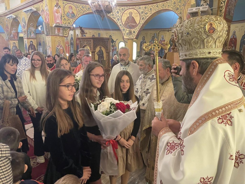 Στη Θεία Λειτουργία συμμετείχε πλήθος πιστών καθώς και μαθητές και μαθήτριες από τα σχολεία της Μητροπόλεως οι οποίοι προσέφεραν λουλούδια στον εορτάζοντα Μητροπολίτη ο οποίος τους ευχαρίστησε δίνοντας την ευχή του.