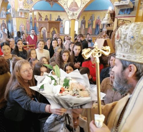 Τις ευχές των μαθητών του ελληνοαλβανικού σχολείου “ΟΜΗΡΟΣ” που εδρεύει στην Κορυτσά δέχθηκε την Κυριακή ο άγων τα ονομαστήριά του, Μητροπολίτης Κορυτσάς κ. Ιωάννης.