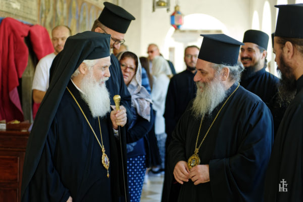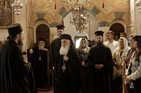 Τον Μητροπολίτη και την συνοδεία του υποδέχθηκε ο Ηγούμενος της Μονής, Επίσκοπος Αντανίας κ. Παρθένιος μαζί με την αδελφότητα. Μετά το πολυχρόνιο και την ξενάγηση στο καθολικό, ακολούθησε το καθιερωμένο κέρασμα και συζήτηση στο μέγα συνοδικό.