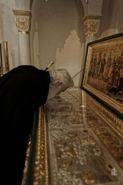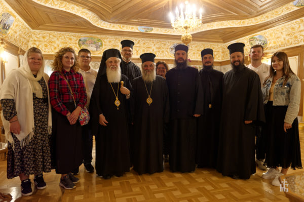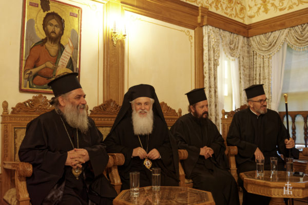Τον Μητροπολίτη και την συνοδεία του υποδέχθηκε ο Ηγούμενος της Μονής, Επίσκοπος Αντανίας κ. Παρθένιος μαζί με την αδελφότητα. Μετά το πολυχρόνιο και την ξενάγηση στο καθολικό, ακολούθησε το καθιερωμένο κέρασμα και συζήτηση στο μέγα συνοδικό.