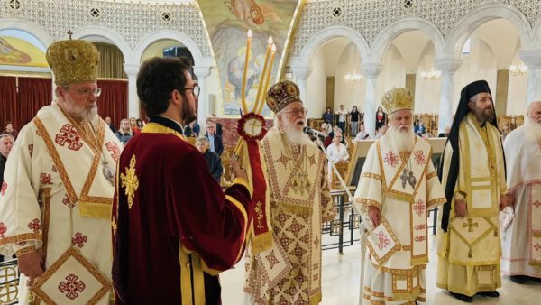 “Είχαμε τη χαρά στη σημερινή Θεία Λειτουργία να είναι κοντά μας αγαπημένοι αδελφοί, ο Σεβασμιώτατος Μητροπολίτης Αχαΐας κ. Αθανάσιος, ένας από τους πολύ γνωστούς θεολόγους της Εκκλησίας της Ελλάδος για χρόνια εκπρόσωπός της στις Βρυξέλλες, ο π. Αντώνιος ο οποίος κατάγεται από το Μπεράτι, αγιογράφος, και είναι στην Κέρκυρα. Να δοξάζουμε τον Θεό για όλη την μεγάλη οικογένεια της Ορθοδοξίας η οποία αυτή τη στιγμή είναι ένας παράγων παρηγοριάς, ελπίδος και αγάπης στον σύγχρονο κόσμο”, ανέφερε ο Μακαριώτατος κ. Αναστάσιος λίγο πριν την απόλυση της Θείας Λειτουργίας ευχαριστώντας τους Ιεράρχες που συλλειτούργησαν μαζί του.