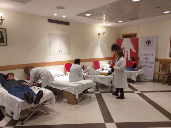 Η δράση αυτή πραγματοποιήθηκε στο πλαίσιο στήριξης των παιδιών που πάσχουν από λευχαιμία, σε συνεργασία με την εθελοντική ομάδα αιμοδοσίας “Συμμαχία Αιμοδοσίας” και μελών του Πανεπιστημιακού Νοσοκομείου Τιράνων.