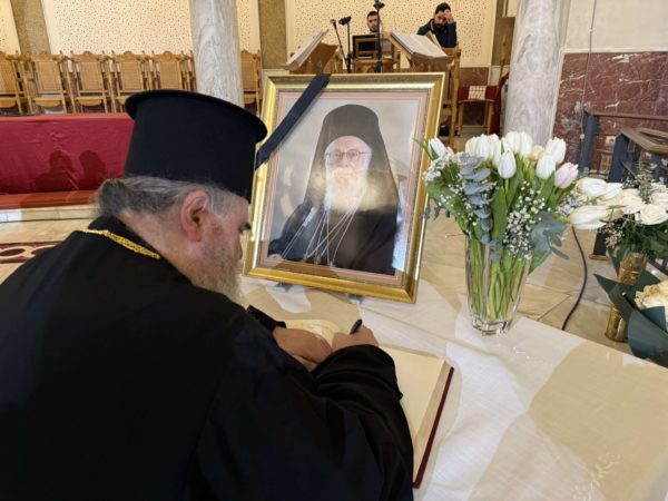Στη συνέχεια ο Μητροπολίτης κ. Ιουστίνος και οι πατέρες έγραψαν στο βιβλίο συλλυπητηρίων.