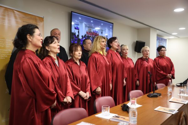 Το πρόγραμμα της πρώτης ημέρας του Συνεδρίου ολοκληρώθηκε με ύμνους που έψαλλε η Χορωδία του Καθεδρικού Ναού της Αναστάσεως του Χριστού υπό την διεύθυνση του Λιγκόρ Τρεμπίτσκα και του Θεοδώρου Πέτσι.