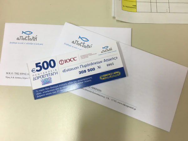 Ο IOCC, ο οποίος στηρίζει επί 7 χρόνια τα προγράμματα της «ΑΠΟΣΤΟΛΗΣ», ηγείται και αυτής της προσπάθειας για την ενίσχυση πυρόπληκτων οικογενειών μαζί με τον οργανισμό Leadership 100, την Παγκρητική Ένωση Αμερικής και τους Έλληνες που ζουν στην Αμερική και συνεισφέρουν και σ΄ αυτή τη μεγάλη καταστροφή που έπληξε την Ελλάδα.