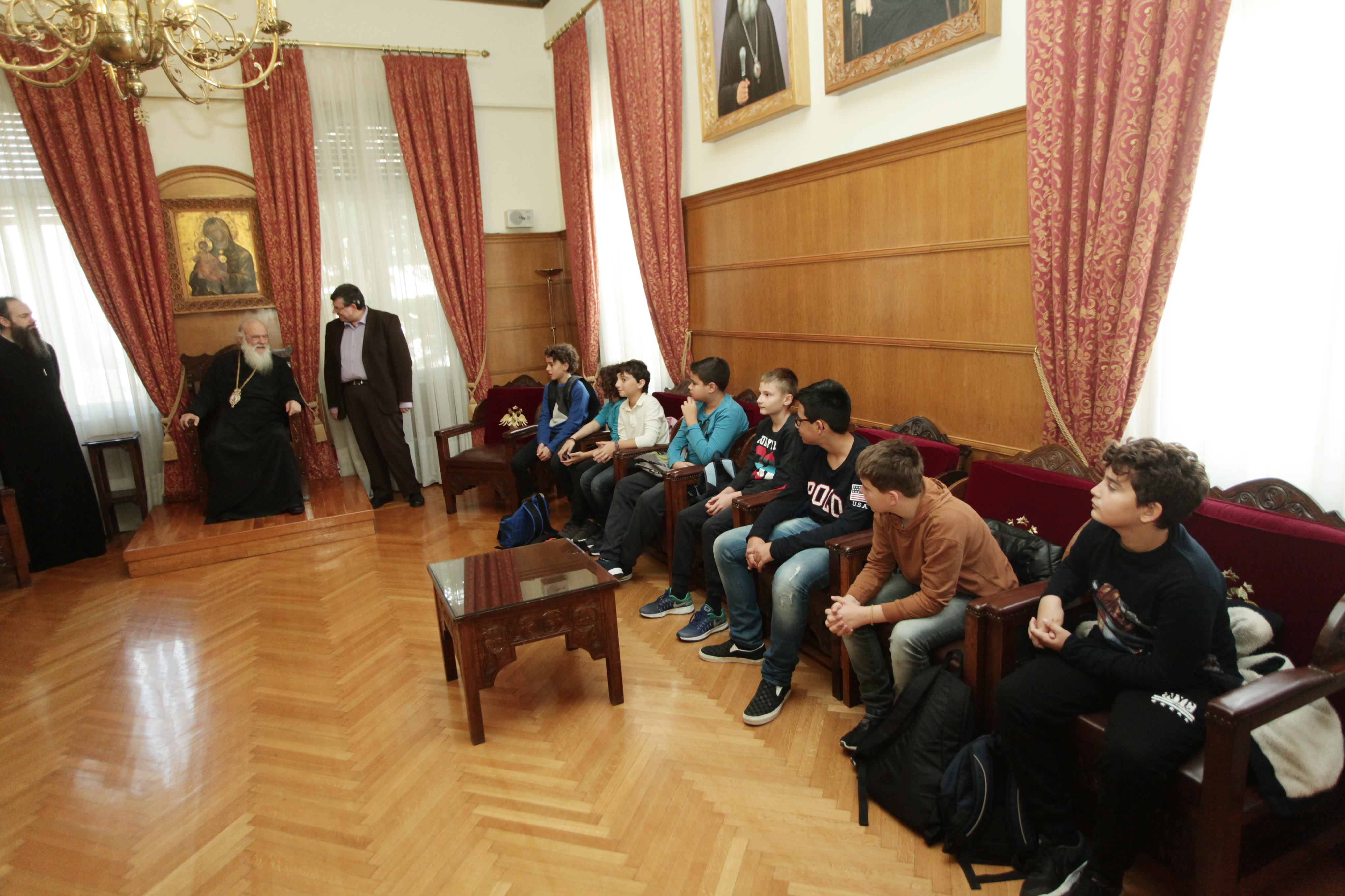 Με μαθητές της ΣΤ’ τάξης του Δημοτικού Σχολείου Κορίνθου συναντήθηκε την Παρασκευή 23 Νοεμβρίου ο Αρχιεπίσκοπος Αθηνών και Πάσης Ελλάδος, κ. Ιερώνυμος.