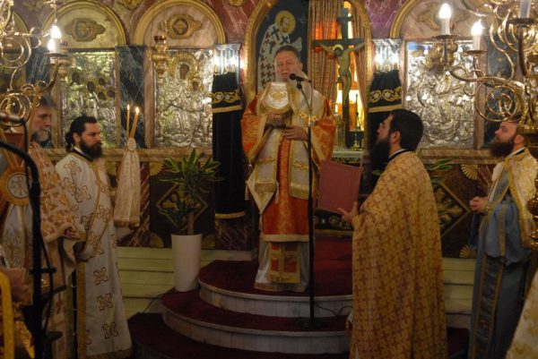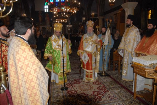 Ο Μακαριώτατος συμπροσευχήθηκε από το Ιερό Βήμα τόσο κατά τη διάρκεια του Όρθρου, στον οποίον χοροστάτησε ο Θεοφιλέστατος Επίσκοπος Φαναρίου κ. Αγαθάγγελος, Γενικός Διευθυντής της Αποστολικής Διακονίας της Εκκλησίας της Ελλάδος, όσο και κατά το Αρχιερατικό Συλλείτουργο των αγίων Αρχιερέων Φαναρίου και Χαλκίδος, στο οποίο συμμετείχαν και Κληρικοί της Ι. Μητροπόλεως Χαλκίδος, με επικεφαλής τον Πρωτοσύγκελλο Αρχιμ. Νικόδημο Ευσταθίου.