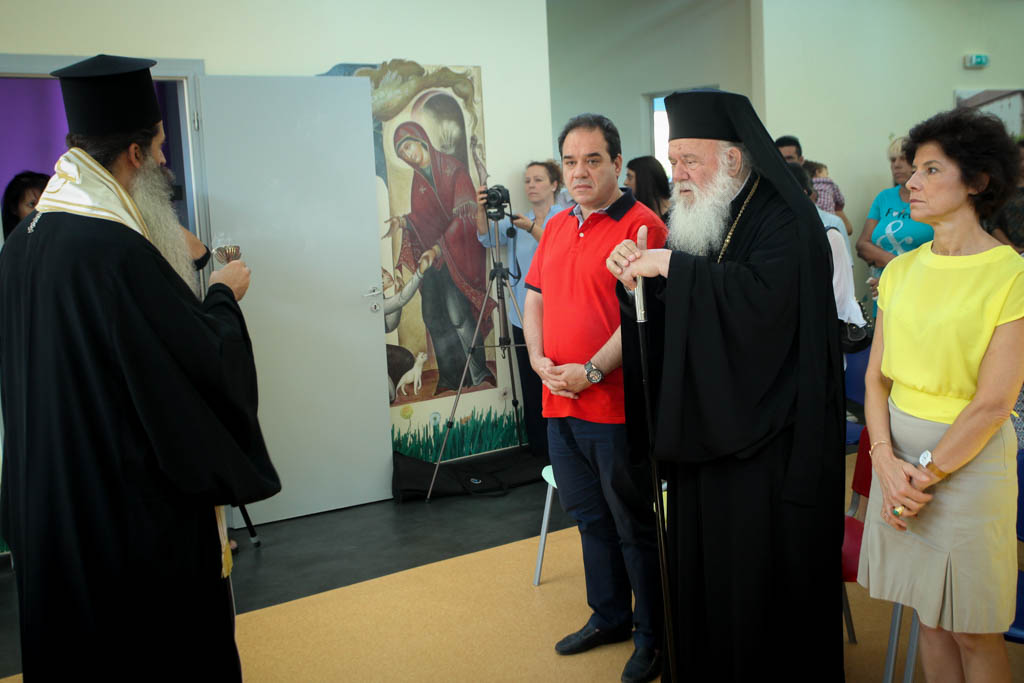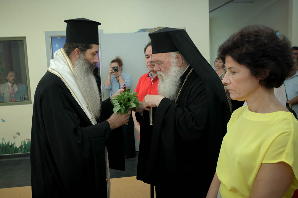 Την ακολουθία του αγιασμού τέλεσε ο Επίσκοπος Θεσπιών κι αμέσως μετά ο Αρχιεπίσκοπος ευχήθηκε σε όλους δύναμη και καλή και δημιουργική χρονιά τονίζοντας πως «στην ζωή δεν έχουμε τίποτε πιο όμορφο από τα παιδιά και θα φροντίσουμε να πάρουν ό,τι τους βοηθήσει, ώστε να γίνουν οι αυριανοί επιστήμονες, οι αυριανοί οικογενειάρχες, τα στελέχη που χρειάζεται ο τόπος μας». Κατόπιν ο κ. Δήμτσας ευχαρίστησε τον Αρχιεπίσκοπο και όλους τους συντελεστές για την προσπάθεια που καταβάλλεται στον Βρεφονηπιακό Σταθμό, ενώ εξέφρασε την χαρά και την ικανοποίησή του για την παρουσία τόσων παιδιών και έδωσε την υπόσχεση ότι θα καταβληθεί κάθε προσπάθεια για να ικανοποιηθούν οι προσδοκίες των γονιών και των παιδιών.