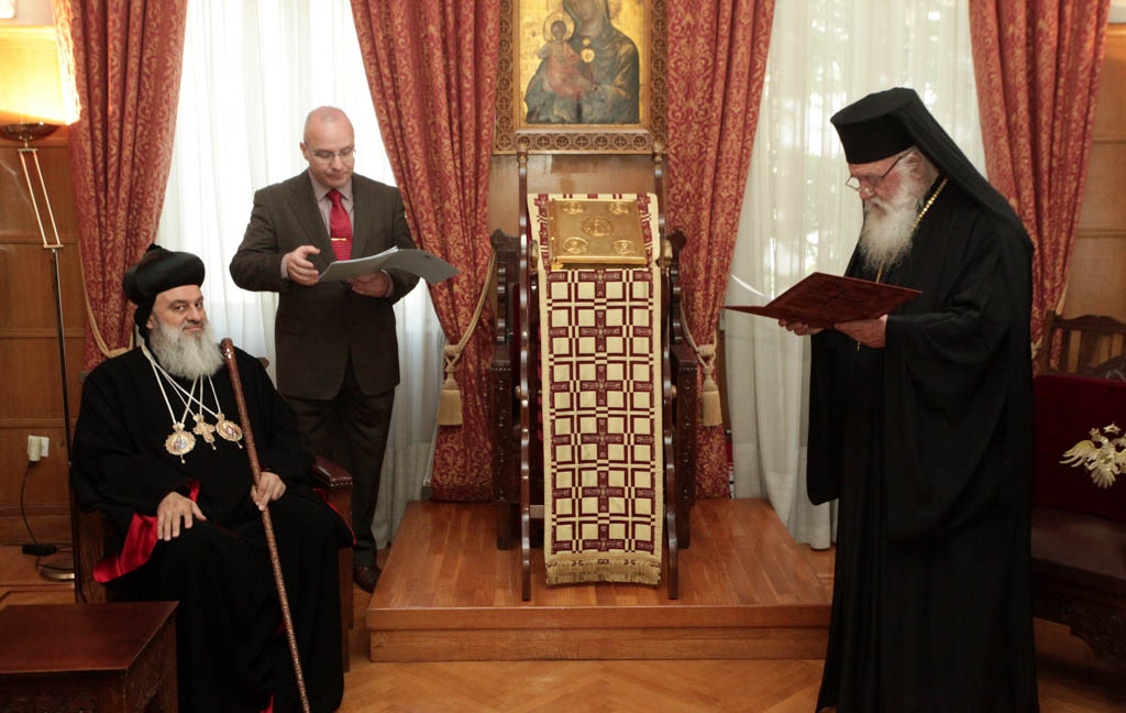 Ο Αρχιεπίσκοπος εξέφρασε την χαρά του για την επίσκεψη του Πατριάρχη και αναφέρθηκε στις τραγωδίες και στον πόνο στην Συρία τονίζοντας πως παρακολουθεί τις εξελίξεις με αγωνία. Επεσήμανε, μάλιστα, ότι «η επικοινωνία και η συνεργασία αυτές τις ημέρες μας δίνει την ευκαιρία όχι μόνο να γνωριστούμε περισσότερο, αλλά και να προβληματιστούμε σε αυτές τις δύσκολες εποχές. Αυτήν την στιγμή το μεγάλο “όπλο” στα χέρια και στην καρδιά των Χριστιανών είναι η προσευχή του ενός για τον άλλον και κυρίως η συνεργασία και η ενότητα σε πολλά πράγματα που είναι απαραίτητα σήμερα».