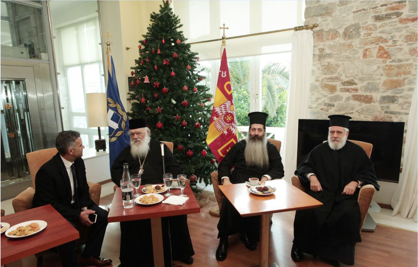 Την Ιερά μητρόπολη Σύρου επισκέπτεται ο Αρχιεπίσκοπος Αθηνών και πάσης Ελλάδος κ. Ιερώνυμος με αφορμή την εορτή των Θεοφανείων. Ο Αρχιεπίσκοπος έφτασε στην Σύρο σήμερα το πρωί με το πλοίο της γραμμής, συνοδευόμενος από τον Πρωτοσύγκελλο της Αρχιεπισκοπής Επίσκοπο Θεσπιών κ. Συμεών, ενώ τους υποδέχθηκαν ο Μητροπολίτης Σύρου, Τήνου, Άνδρου, Κέας και Μήλου κ. Δωρόθεος, ο Αντιπεριφερειάρχης Κυκλάδων κ. Γιώργος Λεονταρίτης, ο Δήμαρχος Σύρου – Ερμούπολης κ. Γεώργιος Μαραγκός, Τοπικές Αρχές, εκπρόσωποι των Ενόπλων Δυνάμεων και των Σωμάτων Ασφαλείας. Ο Μητροπολίτης Σύρου καλωσόρισε τον Αρχιεπίσκοπο χαρακτηρίζοντάς τον «Αρχιεπίσκοπο της αγάπης» και έκανε ιδιαίτερη αναφορά στο κοινωνικό του έργο, ενώ υπογράμμισε πως είναι τιμητική, για το νησί, η επίσκεψή του. Ο Αρχιεπίσκοπος στην αντιφώνησή του ευχαρίστησε τον Μητροπολίτη Σύρου και αναφέρθηκε στην αξιόλογη προσωπικότητά του, ενώ έκανε λόγο για την σημαντική ιστορία της Ερμούπολης. Μίλησε, επίσης, για την αξία της συνεργασίας και ευχήθηκε η αυριανή επίσκεψη του Προέδρου της Δημοκρατίας να στείλει το μήνυμα πως με συνεργασία μπορούμε να επιτύχουμε μεγάλα πράγματα. Αύριο το πρωί ο Αρχιεπίσκοπος θα τελέσει το μυστήριο της Θείας Ευχαριστίας στον Ιερό Μητροπολιτικό Ναό Μεταμορφώσεως του Σωτήρος Σύρου και στη συνέχεια θα τελεσθεί η ακολουθία του καθαγιασμού των υδάτων στο λιμάνι του νησιού παρουσία του Πρόεδρου της Ελληνικής Δημοκρατίας κ. Προκόπη Παυλόπουλου.