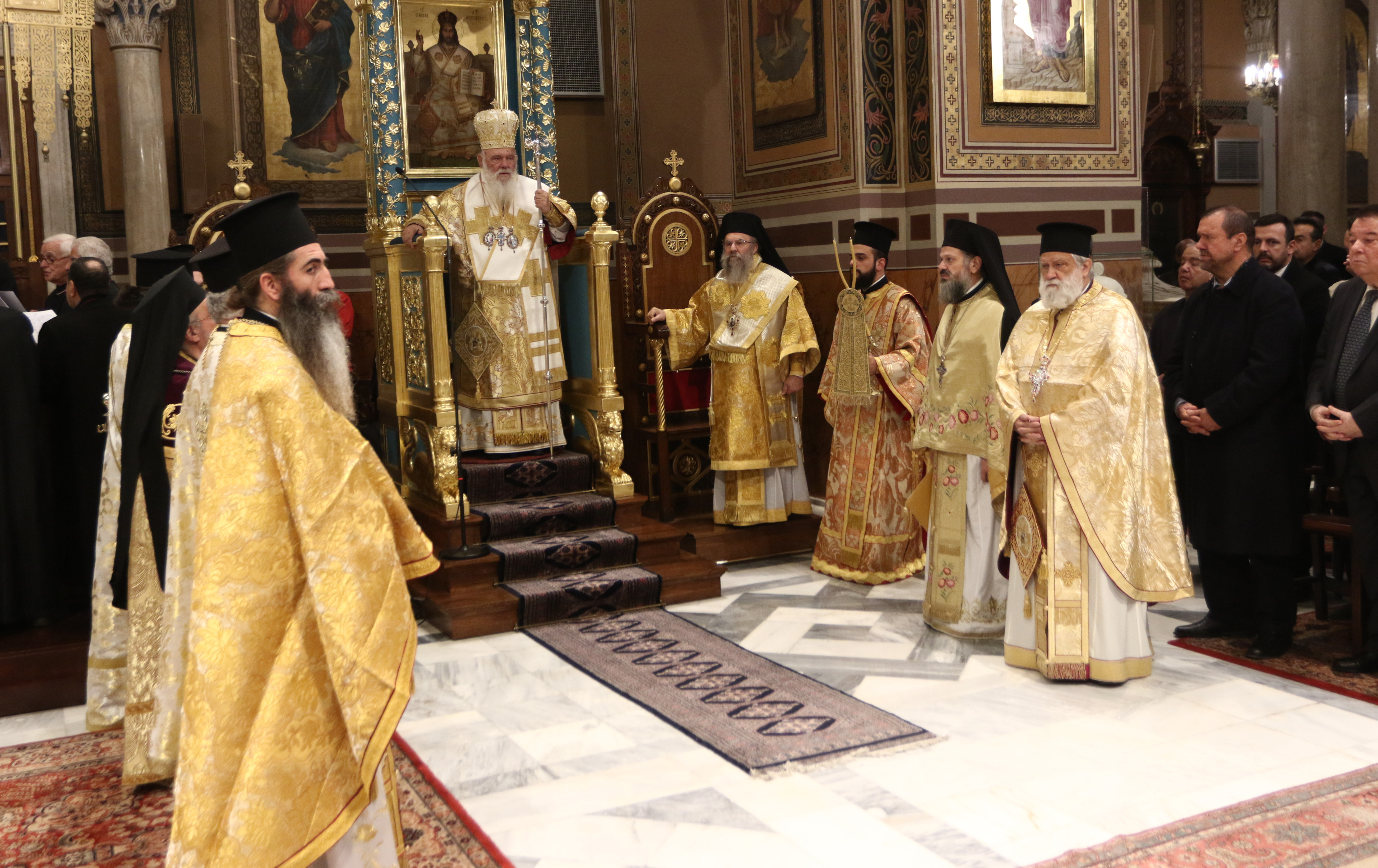 Στην Θεία Λειτουργία προεξήρχε ο Μακαριώτατος Αρχιεπίσκοπος Αθηνών και πάσης Ελλάδος κ. Ιερώνυμος, και συλλειτούργησαν οι Θεοφ. Επίσκοποι θεσπιών κ. Συμεών και Ανδρούσης κ. Κωνστάντιος, ενώ στο ιερό παρέστη συμπροσευχόμενος ο Μητροπολίτης Φιλιππουπόλεως κ. Νήφωνας, του Πατριαρχείου Αντιοχείας.