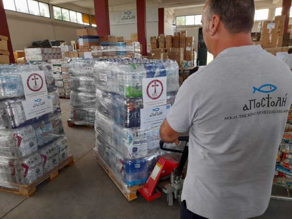 Πενήντα χιλιάδες λίτρα εμφιαλωμένου νερού, παρέδωσε, o Φιλανθρωπικός Οργανισμός «ΑΠΟΣΤΟΛΗ» της Ιεράς Αρχιεπισκοπής Αθηνών, στο Συνεδριακό Κέντρο ‘’Θεσσαλία’’ της Ιεράς Μητροπόλεως Δημητριάδος και Αλμυρού, για την άμεση κάλυψη των πληγέντων με το ύψιστο αγαθό για την επιβίωση τους, το νερό.