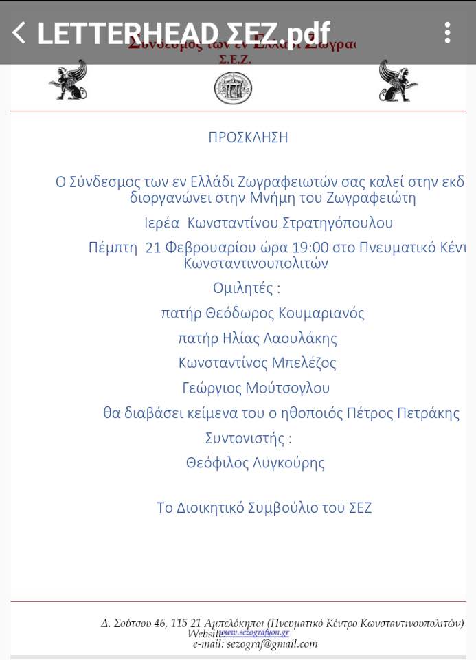 Εκδήλωση μνήμης για τη συμπλήρωση 6 μηνών χωρίς την παρουσία του μακαριστού π. Κωνσταντίνου Στρατηγόπουλου θα λάβει χώρα στο Πνευματικό κέντρο Κωνσταντινουπολιτών στις 21 Φεβρουαρίου (Δ. Σούτσου 46, Αμπελόκηποι) στις 19.00. Πλήθος εκλεκτών ομιλητών θα μιλήσει για τον αξέχαστο μακαριστό π. Κωνσταντίνο και τη πολυποίκιλη δράση του.