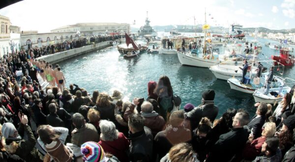 2) 6.1.2019 Ο Καθαγιασμός των υδάτων στο λιμάνι της Ερμούπολης στην Σύρο.